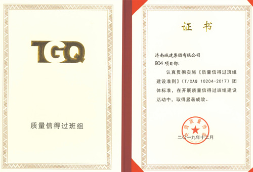 集團804項目部榮獲中國質量協會“質量信得過班組”