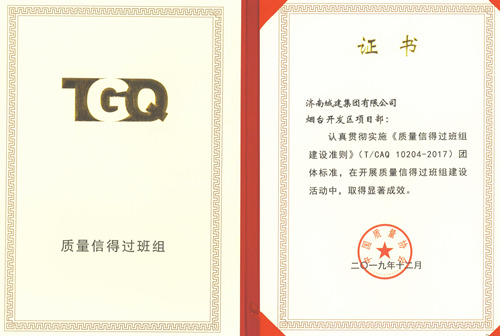 集團煙臺開發(fā)區(qū)項目部榮獲中國質量協(xié)會“質量信得過班組”