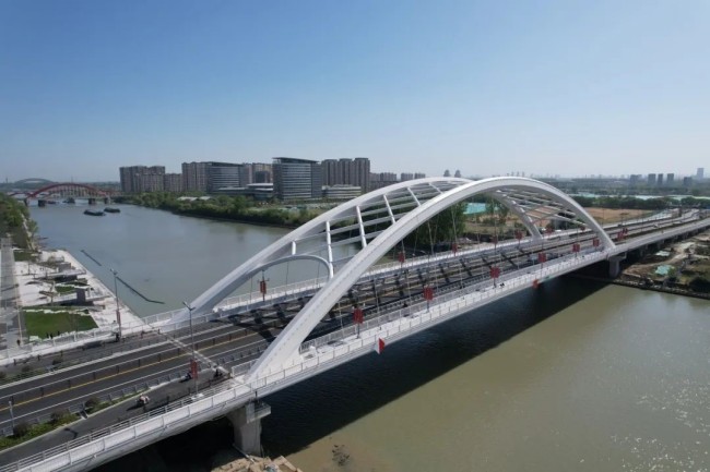 揚(yáng)州二里橋路跨京杭運(yùn)河工程是連接老城區(qū)與新城市中心商務(wù)區(qū)的重要分流通道。項(xiàng)目部以黨建聚力、科技賦能,組織青年突擊隊(duì)保障總重量超5000噸的主橋鋼結(jié)構(gòu)頂推安全。面對(duì)臨時(shí)墩單點(diǎn)集中荷載最大1138噸,突擊隊(duì)員嚴(yán)控支架穩(wěn)定,每日觀(guān)測(cè)沉降,確保頂推順利完成。同時(shí),克服梅雨及高溫影響,20余天完成鋼結(jié)構(gòu)系梁吊裝,應(yīng)用“免鑿毛止?jié){帶”“自動(dòng)化噴淋臺(tái)車(chē)”“Cooker保溫車(chē)”等工藝優(yōu)化資源,提升質(zhì)量。工程通車(chē)后,高效承擔(dān)路網(wǎng)銜接轉(zhuǎn)換功能,顯著分流老城與新城核心區(qū)交通壓力,為帶動(dòng)運(yùn)河兩岸的基礎(chǔ)建設(shè)及經(jīng)濟(jì)發(fā)展提供強(qiáng)力交通支撐。