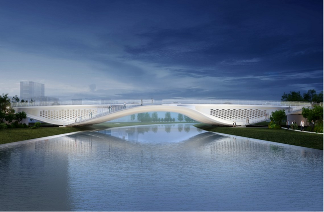 濟南新舊動能轉(zhuǎn)換先行區(qū)橫二路大寺河橋梁段由世界著名橋梁設計師Marc MIMRAM先生主設計,橋梁工程結(jié)構(gòu)為三跨梁拱組合鋼結(jié)構(gòu),全長418米,工程造價1.4億元,橋梁段長150.16米,采用鋼結(jié)構(gòu)梁拱組合體系一跨跨越大寺河,鋼結(jié)構(gòu)總鋼材用量約4197噸。項目融合泉城文化與太極元素,以“泉與太極”為設計理念,兼具功能性與藝術性。作為先行區(qū)核心景觀地標,橋梁的建成拓展了城市發(fā)展空間,推動濟南從“大明湖時代”邁向“黃河時代”,為起步區(qū)高質(zhì)量發(fā)展注入強勁動能。